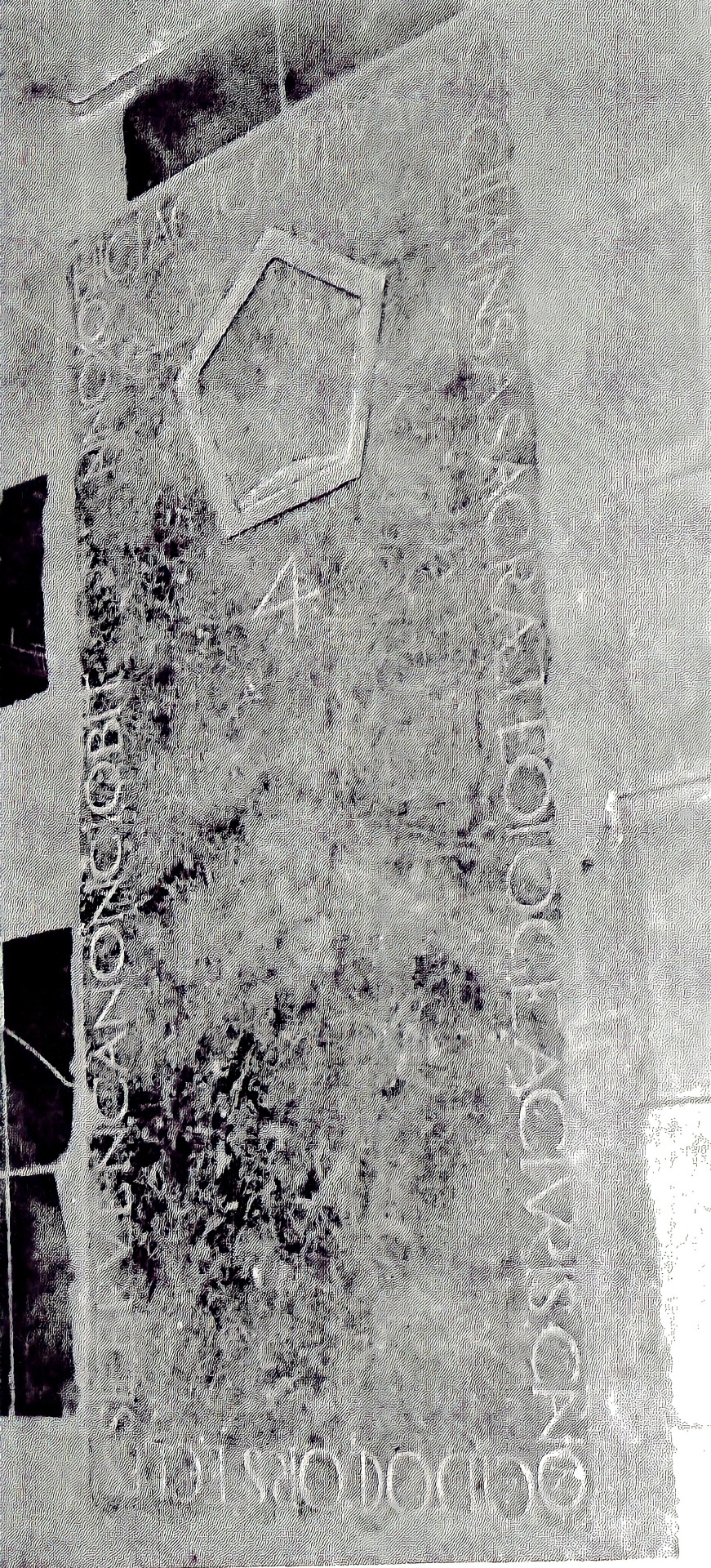 Entrando por la calle del Salvador, y en la zona del evangelio se encuentra situada en el pavimento de la capilla de Santa Quiteria la lápida de don Francisco Aínsa, racionero de dicha iglesia.