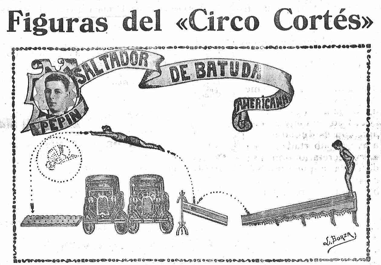"como ocurre todos los años, una de las principales atracciones de la feria, por no decir la primera es el Circo que dirige el veterano y popular señor Cortes, porque en su compañía entran notabilísimos números tanto nacionales como extranjeros: trapecistas, acróbatas, malabaristas,.... La niña de 14 años Angelita Pérez es una monada y notabilidad en los arriesgados trabajos que ejecuta en el trapecio. Todas las noches atrae la admiración del público que llena el circo. Otro escogido número lo constituyen los Pacos, matrimonio de piramidistas, cuyos equilibrios, contorsiones y demás alardes de flexibilidad, presuponen, tenemos que creerlo así, la previa desconyuntación de todas las articulaciones. Los hermanos Pérez figuran en la compañía con la denominación de perchistas, porque efectivamente se cuelgan el uno del otro con notables ejercicios, encaramándose a las alturas con prodigiosa habilidad. Estas noches han llamado poderosamente la atención los equilibristas en escalera hermanos Martínez y particularmente la niña que tiene doce años. Para apreciar todo el merito de estos artistas es necesario ir a pasar un agradable rato al circo acrobático del veterano Cortes".